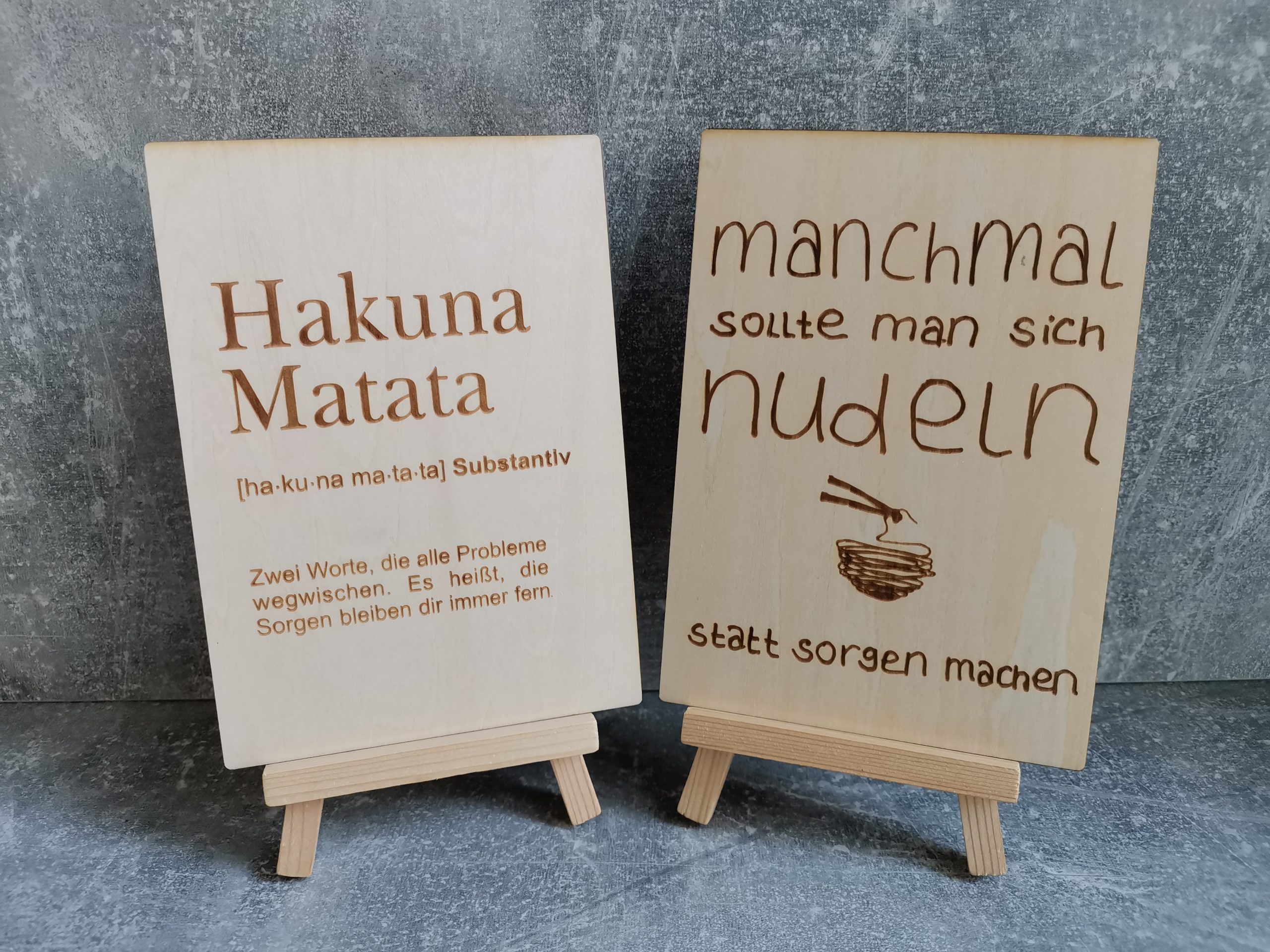 Unsere Holzgrüße sind im Postkartenformat erhältlich und können daher – ausreichend frankiert – auch versendet werden. Alternativ sind sie ein einzigartiges Geschenk oder eignen sich zur Dekoration eurer eigenen Wohlfühlorte.